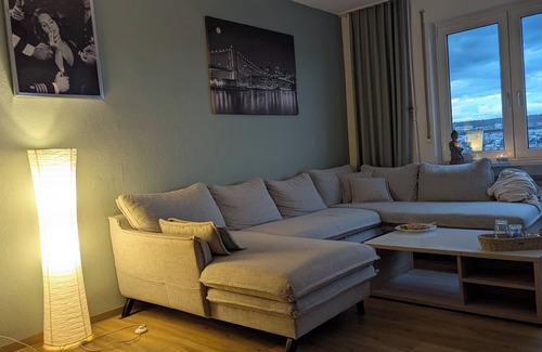 Elegant apartment with a view over the whole city Se encuentra en Pforzheim. Elegant apartment with a view over the whole city ofrece alojamiento, con Silla de ruedas accesible, Ropa de cama/Ropa de cama, Instalaciones de bienestar, Entre otras comodidades. Estas características Apartamento Silla de ruedas accesible, Ropa de cama/Ropa de cama, Instalaciones de bienestar, Para que su estadía sea cómoda.