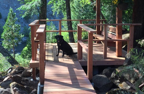 Esta casa cuenta con muchas comodidades, incluyendo áreas fuera de las zonas, barbacoa, una cubierta de estar con vistas al río, montajes de cabina preciosas en dormitorios, cocina y salón. Cada habitación tiene una cama de matrimonio con colchones nuevos, enorme chimenea en el gran salón con mucha madera, aire acondicionado y varios televisores con cable y wifi. Una bañera de hidromasaje está en el baño de arriba maestro y un tragaluz en el dormitorio. Una lavadora y secadora están fuera de la cocina. Todo lo que desea o necesita está ahí.