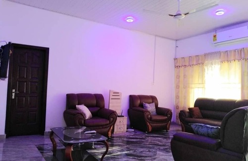 Piso independiente en la planta superior con cocina propia en zona residencial. La propiedad está rodeada por un muro y la puerta se puede bloquear. Hay un centro comercial con un supermercado, tiendas y restaurantes (a 10 minutos a pie). Gasolinera, hospital y estación de policía en el barrio. Bonita vista a las montañas. Cerca de la N4, que conduce al centro de Accra pasando la Universidad de Legon y en la otra dirección al Jardín Botánico Aburi en las montañas.