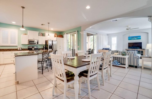 Casa Bonita es luminosa, acogedora y el lugar perfecto para unas maravillosas vacaciones con familiares y amigos en el paraíso tropical. Esta casa tiene 3 habitaciones con 2 completas y 2 medias ubicadas en el corazón de Bradenton Beach, a solo unos pasos del acceso a la playa o de Bridge Street. Puede descansar al sol y disfrutar de un baño en su propia piscina privada climatizada. Es el lugar perfecto para relajarse y entretenerse. También hay un área de juegos cubierta y un bar junto a la piscina con un televisor de pantalla plana para que todos disfruten. Disfrute del café de la mañana en el gran balcón con mosquitero y observe los increíbles colores del amanecer del suroeste de Florida. La cocina, el comedor y la sala de estar son un área abierta con techos abovedados que conducen al balcón con mosquitero donde puede disfrutar de su desayuno o cócteles por la noche. Casa Bonita está bien amueblada con una cocina gourmet totalmente equipada. La cocina cuenta con todos los electrodomésticos nuevos de acero inoxidable, y el comedor tiene capacidad para seis. ¡Una tienda de comestibles Publix está a solo unos minutos! Cocine una cena gourmet, o disfrute de una caminata o un corto viaje en automóvil a muchos de los excelentes restaurantes de la isla. Esta propiedad también cuenta con WIFI gratuito en todo y una lavadora y secadora para su conveniencia.