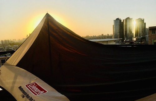 En la azotea y patio .. 明洞 (Myeongdong) 南山 (Montaña Namsan con TIENDA, CAMPAMENTO en APT | Apartamento en Yongsan