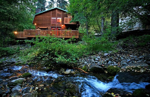 Hermosa cabaña, ubicación perfecta. Ubicado al final de una calle privada tranquila y rodeado de enormes pinos de crecimiento, este es un verdadero escondite de montaña. Puedes salir por la puerta principal a una cubierta envolvente que está justo al lado de un arroyo de montaña fresco y de flujo rápido. Relájese en el jacuzzi y déjese llevar por los sonidos de la naturaleza.