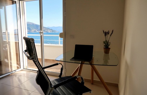 ¡El apartamento más cercano a la playa en Vlorë que encontrarás! Perfecto para familias y parejas. Con impresionantes vistas panorámicas desde los 2 balcones (4to piso) y todos los lujos como aire acondicionado, cocina totalmente equipada, Smart TV, etc. La mayoría de los apartamentos en Vlorë están separados del mar por una carretera concurrida, peligrosa y de carga. Solo un puñado de lugares como este tienen el lujo de tener una carretera detrás del edificio en lugar de al frente. Lo que hace que este lugar sea superior!
