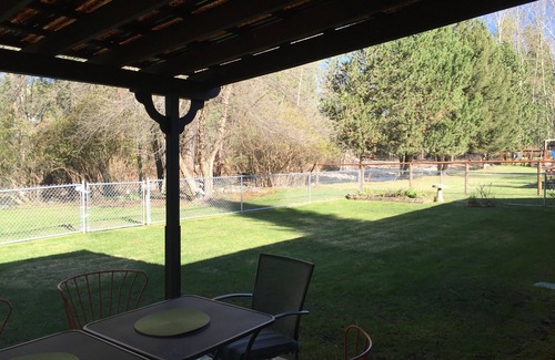 Este tres dormitorios, dos baños casa estilo rancho en la hermosa serpiente de cascabel Creek cuenta con un patio para cenas Arroyo lado y visualización. El dormitorio principal cuenta con una cama de matrimonio y cuarto de baño. Las dos habitaciones de la reina incluyen mesas de trabajo para la electrónica personal. Todas las comodidades de casa ... wifi, cable y lo más importante lo que no lo hace, la serenidad de la serpiente de cascabel corriendo adormecer a dormir.