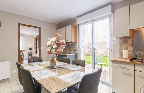 Casa unifamiliar. Salón (TV de pantalla plana, internet de fibra óptica) con estufa de pellets que da al comedor. Cocina (placa de gas, horno, lavavajillas, frigorífico, cafetera exprés, cafetera de filtro, microondas). Cuarto de lavado (fregadero, horno, frigorífico con congelador, lavadora, secadora). Aseo independiente. Despacho (juegos, libros). Planta alta: dormitorio 1 (cama de 160x200) con TV. Cuarto de ducha, aseo independiente, dormitorio 2 (2 camas de 90x200) con TV, dormitorio 3 (cama de 160x200) con TV. Equipamiento completo para bebés (cuna, trona, bañera, cochecito, etc.). Calefacción eléctrica incluida. Todos los gastos incluidos. Sábanas y toallas incluidas. Camas hechas a la llegada. Servicio de limpieza con suplemento. Terreno privado y cerrado. Terraza. Mobiliario de jardín. Tumbonas. Barbacoa. Pista de petanca. Aparcamiento. Caseta de jardín. Dos bicicletas disponibles. Al final de una calle sin salida, esta cómoda casa se encuentra en el barrio residencial de La Haye du Puits. Este pequeño pueblo de Cotentin, con sus coloridas fachadas, es famoso por su animado ambiente. Encontrará todo tipo de tiendas y un animado mercado semanal. Puede ir caminando al centro.