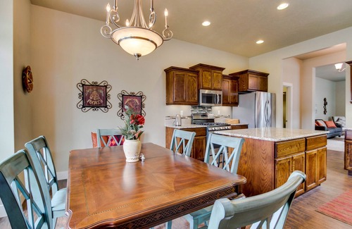 Enamórate de los gabinetes de madera oscura, la elegante cocina y las amplias habitaciones de esta fantástica casa adosada de un solo nivel a las afueras del centro de Boise, una maravillosa base para explorar la Ciudad de los Árboles. Pase por la puerta principal hacia la sala de estar llena de luz, donde grandes ventanas cubren casi una pared entera y un televisor de pantalla plana espera por encima de la chimenea de gas. En el exterior, puede respirar el aire fresco de Idaho en el patio trasero cercado, encender la parrilla de gas para una barbacoa en el patio sombreado y pasar las noches recostado en los asientos del patio y mirando las estrellas.