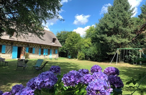 Bonita casa de campo con techo de paja (3 *) renovada en medio de un jardín de 4000m2, a 5 minutos a pie de la ciudad, que consta en la planta baja de 2 habitaciones dobles cada una con su baño privado con ducha y WC, una sala de estar con chimenea grande, cocina totalmente equipada, WC separado, habitación de arriba con 3 camas individuales, habitación con 1 cama doble, sala de TV grande con sofá cama y baño con bañera y wc. Cerca de Honfleur y Deauville, Cabourg goza de una ubicación ideal para visitar los sitios esenciales de Normandía. Campos de golf y granjas cercanas. Honfleur Normandy Outlet 10 minutos. Camas hechas a la llegada, toallas proporcionadas. Salida de limpieza incluida.