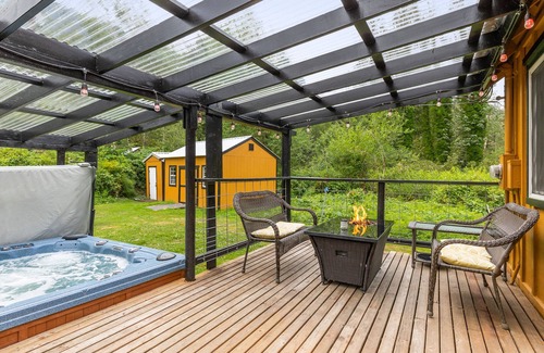 Este adorable bungalow está rodeado por los impresionantes picos nevados del monte. Index y Mt Baring, así como un hermoso patio de pastoreo con flores y flores silvestres en el verano. Una espaciosa terraza cubierta amueblada con muebles de cuero, estufa de leña, parrilla a gas, iluminación ambiental y un spa cristalino crea una sala de estar al aire libre que es perfecta para disfrutar de las vistas o contemplar las estrellas de la noche. Escuchará los sonidos del cercano río Skykomish, con fácil acceso al río a poca distancia. Venga equipado con madera para que el fuego de la hoguera ruge por verdaderos pasatiempos del Noroeste del Pacífico que asan s'mores y perros calientes.