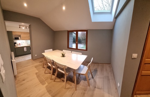 La casa es de unos 70 M² ubicado en la ciudad de Buysscheure, ciudad de Flandes. La cabaña está junto a la casa de los propietarios, ubicada en el corazón del pueblo de 580 almas, en un entorno muy tranquilo y verde, y al comienzo de muchas rutas de senderismo y cerca de las marismas de St Omer. La casa tiene acceso independiente, una plaza de aparcamiento, un jardín privado de 500 m² rodeado de una piscina segura y una terraza de unos 16 m².