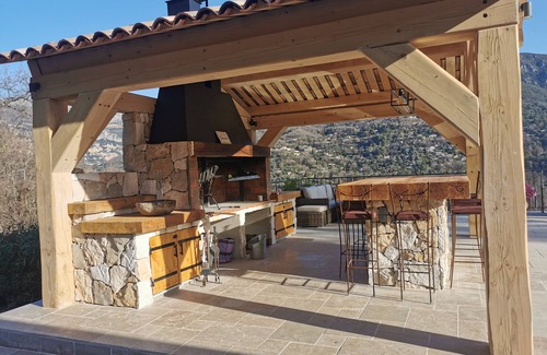 Esta apacible casa provenzal se encuentra entre la vegetación mediterránea y la naturaleza, a solo 5 minutos en coche de la pintoresca localidad medieval de Le Bar sur Loup y sus servicios. La propiedad ofrece impresionantes vistas panorámicas de las montañas y las Gorges du Loup.