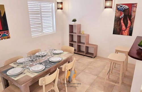 Encantadora villa gemela, de puro estilo caribeño, equipada con dos dormitorios, un sofá cama, dos baños. Ubicado en un entorno verde con entrada y estacionamiento privados, todo integrado en una residencia de 16 villas casi idénticas.