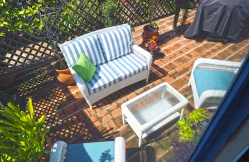 Nuestros huéspedes disfrutan especialmente de la libertad de caminar a prácticamente todas las atracciones principales en y alrededor de Laguna Beach. Cuando regresan al final del día, pasan por la vieja puerta de madera, bajan los escalones hacia este extraordinario entorno de jardín.