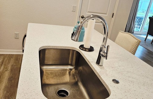 This 2-bedroom, 2 bathroom house in The Villages is perfect for your escape. With a king bed and a queen bed, guests can enjoy a comfortable stay. The screened front porch is a delight in the afternoon, and a wonderful place to relax and sip a nice cool beverage while planning your evening outings to one of our wonderful squares for free nightly entertainment. Like golf? With over 65 golf courses we have you covered. Pools? You bet! Pickleball - of course! All of the many amenities of the Villages are at your disposal from this lovely 1 year old rental villa. The property is so peaceful and quiet. The kitchen is equipped to make nice meals as well. Make your holiday one for the books with a stay at our place.