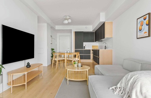 Cerca este apartamento en la playa podrás disfrutar de la ribera del río. Estarás a 2min en coche de Puerto de Aarhus y a 3min también en coche de Teatro de Aarhus.