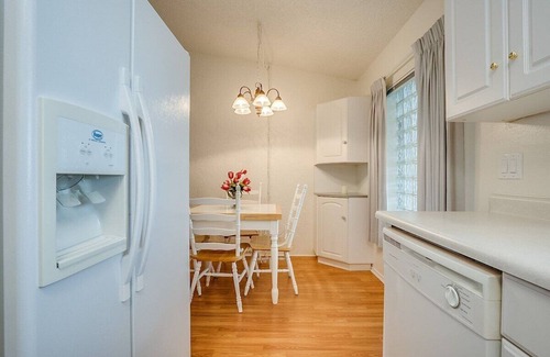 Con muebles nuevos, pisos de madera noble laminados, aire acondicionado central y otras renovaciones recientes, esta encantadora propiedad tiene muchas características excelentes. La sala de estar abierta y luminosa ofrece un excelente lugar para relajarse, ver sus películas favoritas en la televisión inteligente o disfrutar de un buen libro. Con muebles cómodos, techos abovedados y vistas a la vegetación exterior, les encantará pasar tiempo juntos en esta acogedora área.