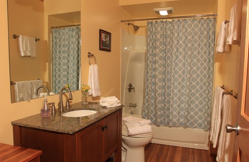 En nuestra área común, a. k.a. The Loft, tendrá acceso a DVD, libros, juegos, TV satelital, equipo de ejercicios, mapas / guías de senderos e información del área. También lo invitamos a explorar y disfrutar de nuestros senderos, fogatas, arbustos de bayas, camas de fresas elevadas, estanque de ranas y colina en trineo.