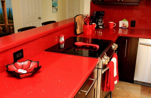 • Moderno con encimeras de CUARZO ROJO en la cocina de la cocina