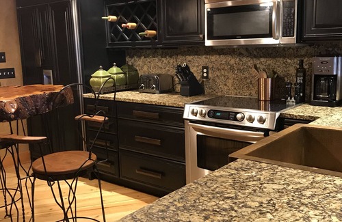 Exclusivo refugio de cabaña. Enorme cubierta de cuña con vistas al lago. Vista al lago, espaciosa, King master con baño en-suite. Amplio vestidor de ladrillo a la vista, ducha tipo lluvia con chorros laterales. Fregadero y bañera de cobre. Los muebles de cuero de la sala de estar te permiten acurrucarte y disfrutar de la vista o del televisor de pantalla grande (cable Spectrum). La cocina de diseño incluye refrigerador / congelador Sub Zero, electrodomésticos Bosch; fregadero de cobre y granito cortado en bruto. El dormitorio de invitados Queen tiene baño al otro lado del pasillo con muebles del Viejo Mundo y bañera / ducha. Lavadero independiente con lavadora y secadora de carga frontal de tamaño completo. La cubierta se completa con Weber Genesis Grill, sillas Adirondack y un área de cubierta con sofá de mimbre y área de comedor de estilo banco. Puede estacionar cerca de su puerta y caminar adentro sin escalones. Puedes flotar en el lago o nadar en dos piscinas. Una piscina está incluso climatizada. Se incluye rampa para botes en el lugar y deslizamiento. Un deslizamiento PWC cuádruple puede estar disponible si lo prefiere. Fácil fuera de la autopista 54. Cerca del parque estatal HaHa, ¡no te puedes perder! Cedar Glen es un complejo pequeño y muy bien cuidado. No hay rascacielos que no estén en el lago. Lake Valley Golf está cruzando la calle y Kinderhook está cruzando la autopista 54. Listado por primera vez en VRBO 3/2020. Desde la salida 54, todo está cerca de tiendas, bodegas, golf, restaurantes, etc.