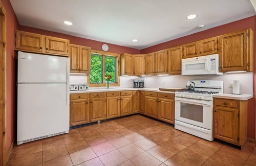 Este espacioso retiro cuenta con siete habitaciones y cinco baños. Las configuraciones para dormir son casi infinitas. El nivel principal tiene tres habitaciones con camas queen y dos baños. El nivel inferior tiene dos habitaciones queen, una habitación con tres literas, una habitación con una habitación queen y una litera, y un sofá cama queen para ese espacio adicional. ¡Sunburst Chalet es uno de los mejores alquileres de casas grandes que Killington tiene para ofrecer!