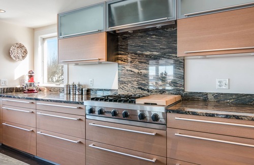 Esta residencia completamente renovada se encuentra en una hermosa extensión de tierra frente al mar (3/4 de acre) en Gap Cove en el deseable South End de Rockport. Esta propiedad con aire acondicionado tiene 5 habitaciones (capacidad para 12), 4. 5 baños y una planta baja de planta abierta con vistas panorámicas al océano que se extiende desde la cocina en un extremo hasta la segunda sala de estar en el otro lado de la casa. Hay un gran comedor que contiene una mesa de comedor de aluminio cepillado a medida con capacidad para 12. El área de comedor pasa a la sala de estar, que está equipada con una chimenea de leña y ofrece cómodos asientos en forma de amplios sofás, sillas y banquetas acolchadas que bordean las ventanas. Las puertas de vidrio del patio conducen al patio, que está separado del océano por un exquisito, casi escultural, dorado paisaje rocoso. El nivel del suelo tiene una segunda sala de estar, también con vistas panorámicas al océano, a la que se accede a través de un corredor de vidrio. Esta sala de estar tiene un sofá modular, abundante material de lectura y un televisor de pantalla panorámica. El hermoso techo de cedro se eleva para ofrecer una vista amplia de Sandy Bay y sus puestas de sol de color rosa y naranja. Esta segunda sala de estar también cuenta con un gran porche con vista al jardín y al océano debajo. La planta baja está equipada con medio baño, una sala de lavandería con dos lavadoras y una secadora y una sala de barro. La cocina es espectacular: una cocina de chef cuidadosamente configurada con frentes elegantes (del diseñador alemán Poggenpohl), amplias encimeras de granito de caoba de Dakota y la extraordinaria escena del océano justo afuera de sus numerosas ventanas. La cocina incluye una isla central, un gran refrigerador de dos puertas verticales, lavaplatos, fregadero doble (con triturador de basura), cajón de pan, horno de vapor, horno de pared normal, estufa de gas de seis hornillas, despensa, mesa alta de desayuno con lava roja Tapa de piedra y siete taburetes. Hay un área de bar separada con dos refrigeradores de cajones de bebidas bajo mostrador Sub Zero y un refrigerador de vino Sub Zero masivo. Todo lo que necesita exactamente en el lugar correcto para que florezca la creatividad culinaria.