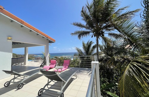Disfrute de sus espectaculares vistas al mar y la brisa mientras cena en la terraza cubierta con vista a la piscina y al jardín tropical. La comodidad y la elegancia con un toque caribeño es el tema en toda la villa. La villa se basa en un gran plan abierto con un jardín tropical con plátano, mango, árbol, papaya, flores tropicales ... El nivel principal incluye una amplia sala de estar, 2 dormitorios con 2 baños, cocina, comedor con isla de gran tamaño, área de bar con dos refrigeradores y máquina de hielo. La cocina está completamente equipada e incluso tenemos una cafetera nespresso. Puede usar un gazbbq grande o nuestro gaz profesional. Esta área principal se abre en la gran área de la piscina donde puede tomar un cóctel agradable en la brisa tropical y disfrutar de las fantásticas vistas o escuchar las olas del océano o conectar su ipod y reproducir su música favorita en el sonido envolvente y al aire libre (Bose sistema de sonido). El primer piso está dedicado al dormitorio principal y la planta baja reúne 3 dormitorios de los cuales uno tiene 4 camas. Todas las habitaciones tienen vista al mar.