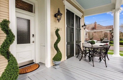 This vivacious rental is 1.5 miles (7 mins by car) away from the French Quarter. You may take a 15 minute walk to the Carrolton/St. Charles Streetcar line (or walk one half block and ride the bus).