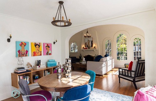 Esta casa de estilo español se encuentra sobre una calle adoquinada en el histórico barrio de Edgewater. Diseñadas en la década de 1920 por el arquitecto más famoso de Rockford, Jessie Barloga, las casas de Barloga representan lo mejor de la arquitectura de estilo español, Tudor Inglés y Art Deco en todo Rockford. Con una cocina gourmet completamente modernizada y equipada, esta encantadora casa de tres habitaciones tiene capacidad para 6 personas. Ya sea que necesite un lugar para quedarse por trabajo o por placer, se sentirá como en casa en esta acogedora joya. La sala de estar tipo catedral, con sus techos abovedados y sus pisos de madera noble, está inundada de luz natural y una chimenea original. En todo el hogar, los muebles fueron cuidadosamente seleccionados para ser cómodos y elegantes, acentuados con piezas de arte, libros y recuerdos de Rockford. El entorno creado sirve como una experiencia única e interesante, así como para satisfacer la necesidad de un gran fondo visual para las fotografías de sus vacaciones familiares y los recuerdos eternos. La cocina completamente renovada, equipada con estufa de gas inoxidable negro y horno, microondas, lavaplatos, cafetera Keurig, máquina de palomitas de maíz Whirly Pop y refrigerador enorme, es el lugar perfecto para preparar comidas completas para usted y su familia hambrienta. Hay una mesa de cocina, así como un comedor completo. Una lavadora y secadora de carga frontal también están disponibles para su comodidad. La casa está a una cuadra del hermoso y sereno Rock River y el sendero para caminar, y una caminata rápida hasta el cercano Conservatorio Nicholas, la Facultad de Medicina de la Universidad de Illinois y los famosos Jardines Anderson de Japón. La casa está ubicada a dos millas del centro de restaurantes y tiendas, y se encuentra a 5 minutos en automóvil de Rockford University, Mercy Hospital, Sundstrand y Woodward Governor. ¡Hay tanto que ver en Rockford! Para hacer algo de ejercicio, considere hacer una excursión a pie por el río Rock, o el sendero Rock River de 320 millas está disponible para su placer. Mientras se acurruca en el área principal para ver una película, el dormitorio del segundo piso es perfecto para que los niños se escapen y se diviertan (¡y sus palomitas de maíz!). Con dos futones y mucho espacio para jugar y trabajar, puede estar seguro de que las necesidades de privacidad de cada persona se cumplirán. Nunca querrá dejar la Casa Clinton después de su visita, pero la experiencia creará recuerdos que vale la pena repetir.