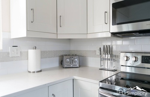 Si disfrutas del entretenimiento, te encantará la cocina gourmet ultramoderna, completa con electrodomésticos de acero inoxidable, hermosos gabinetes y todos los utensilios y utensilios para hornear que necesitas para cocinar en casa.