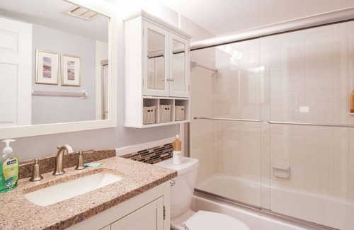 La acogedora suite principal cuenta con una cama king-size y un televisor de pantalla plana, así como un baño privado con una gran ducha a ras de suelo y amplificador; protector contra salpicaduras de azulejos. La acogedora habitación de invitados incluye dos acogedoras camas de tamaño completo con una puerta de acordeón para su privacidad, y el baño de visitas incluye bañera y ducha. También hay una lavadora / secadora en caso de que necesite ponerse al día con algo de ropa. Esta casa tiene capacidad para 4 personas.