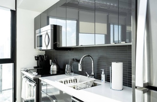 1 habitación, 1 baño, un televisor configurado con un Amazon Firestick para disfrutar de Prime Video y Netflix, y WiFi gratuito. La cocina está equipada con electrodomésticos de acero inoxidable, encimeras de cuarzo y completamente equipada con utensilios de cocina para preparar su comida gourmet favorita.
