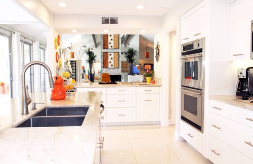 Quédese en esta casa elegante y contemporánea con un tema de diseño de mediados de siglo / Hollywood Regency. Esta casa incluye una gran sala con techos de 20 ', muebles de diseño, chimenea de gas, fogata al aire libre, Wi-Fi de cortesía, 3 televisores de pantalla plana, todos con DVD y puertas corredizas de vidrio de 12 a ocho pies en toda la casa.
