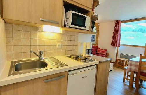 Estudio-cabina renovado, balcón sur, en el centro, a pie de pistas y comercios en Plagne Villages Se encuentra en Plagne Villages. Estudio-cabina renovado, balcón sur, en el centro, a pie de pistas y comercios en Plagne Villages ofrece alojamiento, con Niño amigable, Cocina, Silla de ruedas accesible, Entre otras comodidades. Estas características Apartamento Niño amigable, Cocina, Silla de ruedas accesible, Para que su estadía sea cómoda.