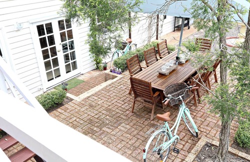 Los huéspedes de Le Studio disfrutan de acceso privado al jardín trasero, que incluye cenas al aire libre, bañeras privadas al aire libre, un columpio, cenador con rosas y 2 bicicletas con cestas de picnic.