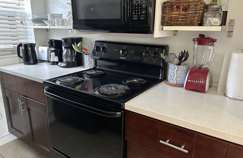 Muy bonito estudio boutique, cerca de la playa y gran cantidad de servicios, recientemente renovado estilo de mediados de siglo, 1 baño, cocina completa con todas las ollas y sartén y artículos básicos comestibles, tostadora, cafetera, wifi, TV por cable, aire acondicionado , secador de pelo, plancha y tabla de planchar, barbacoa exterior, jardín privado exterior con sillas y césped artificial, sillas de playa, cerca de Oakland Blvd edificio muy limpio con solo 4 apartamentos, 1 estacionamiento privado, a poca distancia de restaurantes, supermercado , farmacia, bares. Complejo cerrado Vecindario exclusivo, seguro y tranquilo, no demasiado lejos del aeropuerto (11 millas). Esta es una unidad para no fumadores. Edificio bonito y seguro con una terraza cerrada. Apt en la planta baja.
