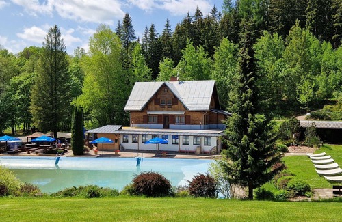Chalet tipo suizo muy bonito, confortable de 3 plantas, individual. 7 casas en el complejo. En las afueras de la localidad, lugar tranquilo, soleado, a 50 m de un bosque, a 2 km de la zona de esquì. Comunitario: terreno en estado natural, terreno con hierba, piscina (Disponible por temporada: 26.Jun. - 03.Sep.). Ducha/WC en zona de piscina, tenis de mesa, petanca, badminton, voleibol playa, barbacoa, lugar para hoguera. En el inmueble: Wifi, billar, sala para guardar bicicleta, solarium, sala guardaesquís. Aparcamiento (para 12 coches) junto a la casa. Estación de carga eléctrica. Tienda de comestibles 1.5 km, centro comercial 6 km, restaurante 5.5 km, parada autobús "Mladé Buky" 1.5 km, estación de tren "Mladé Buky" 1.5 km, piscina cubierta 10 km. Campo de golf (18 hoyos) 4 km, centro ecuestre 3.5 km, rutas de senderismo desde la casa, caminos para bicicletas 50 m, alquiler de esquís 2.5 km, parada de ski-bus 50 m, escuela de esquí 2.5 km, escuela de esquí para niños 2.5 km, pista de trineo 2 km, pista de esquí de fondo 500 m, parque infantil 50 m. Atracciones en los alrededores: zábavní park Baldův svět, 2.5 km, Rozhledna Eliška, tvrz Stachelberg 9 km, Stezka Korunami stromů Janské Lázně 10 km, Lanovka na Sněžku, Pec pod Sněžkou 18 km, Zoo Dvůr Králové, Adršpach 28 km, Vyhlídkové lety Vrchlabí, Kuks 30 km. Zonas de esquí populares fácilmente accesibles: Mladé Buky 2 km, Janské Lázně 9 km, Černý Důl, Pec-Černá hora 15 km. Zona de senderismo Krkonošský národní park. In the resort: Stone Balance Point – a relaxing technique of balancing stones in beautiful nature, Wimhof toning techniques in the pool (off season). Deposit for shortbreaks (2-3 nights) CZK 10.000 all year round.