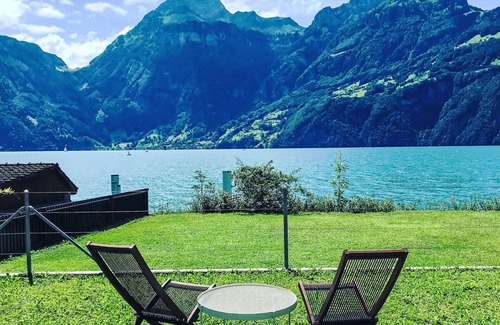 Sisikon a 5 km de Brunnen: Casa unifamiliar "Villa am See 3", confortable, lujosa de 4 plantas. En la localidad, lugar tranquilo, soleado, a orillas del lago. Comunitario: terreno con hierba. Zona de baño. Privado: jardín. Barbacoa. En el inmueble: futbolín, sala para guardar bicicleta, calefacción central, lavadora, secadora, alquiler de bicicletas. Lancha motora (bajo solicitud Acuerdo local). Acceso estrecho hasta la casa. Aparcamiento (para 4 coches) junto a la casa, garaje individual. Tienda 5 km, tienda de comestibles 5 km, supermercado 5 km, parada autobús "Sisikon, Bahnhof" 200 m, estación de tren "Sisikon" 200 m. Campo de golf (9 hoyos) 6 km. Lagos conocidos fácilmente accesibles: Vierwaldstättersee. Zona de senderismo Stoos, Weg der Schweiz, Rigi.