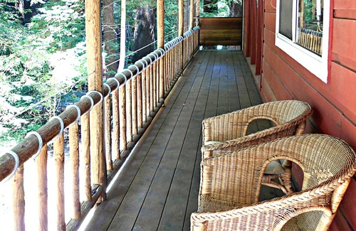 Russian River Retreat está ubicado entre impresionantes árboles de secuoyas que dan sombra a las cubiertas de forma natural para disfrutar de comidas cómodas al aire libre y está rodeado por una hermosa valla elaborada según las tradiciones japonesas, que le brinda la máxima privacidad.