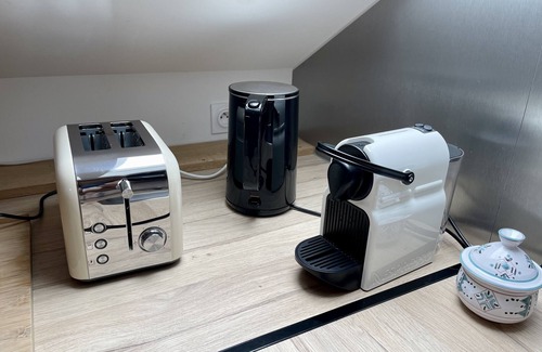 Cocina equipada FRIGO, HORNO, MACINE A CAFÉ, COCINA, abierto en estancia, habitación independiente con cama de 140 muy cómoda y tranquila.