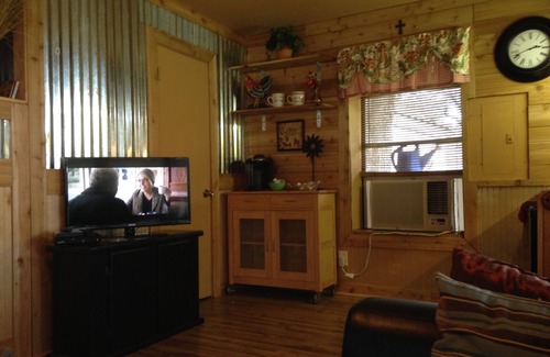 Relajante ambiente al aire libre con muchos árboles, arroyo para pescar, senderismo. La cabina tiene capacidad para 4-5; cocina pequeña; baño con ducha; Loft en la habitación de arriba. Varias áreas de estar al aire libre con cubierta envolvente, televisión, parrilla y fumador incluidos. Perfecto para unas vacaciones tranquilas lejos del ajetreo y el bullicio. Las comodidades al aire libre incluyen fogatas (a menos que la prohibición de quemaduras esté vigente), pesca, herraduras, ¡excelente área para practicar senderismo!