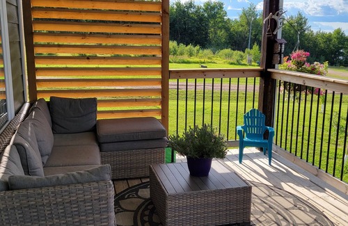 En esta cabaña que acepta mascotas podrás disfrutar de paseos en moto de nieve, del esquí de fondo y de mucho más a muy poca distancia. Si quieres explorar la zona, puedes conducir 33min hasta Parque Nacional Prince Albert.
