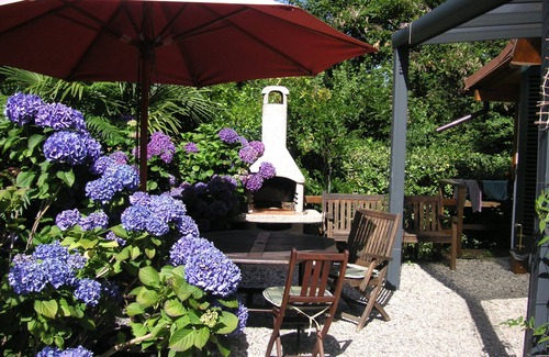 El jardín de ensueño tiene una gran terraza soleada con una gran barbacoa, para que pueda disfrutar de la naturaleza incluso cuando está lloviendo.