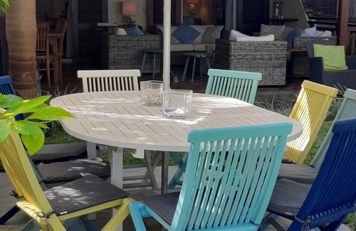 ¡Acceso directo a la playa! Mesa de comer en el jardín .... (10 plazas), y barbacoa.