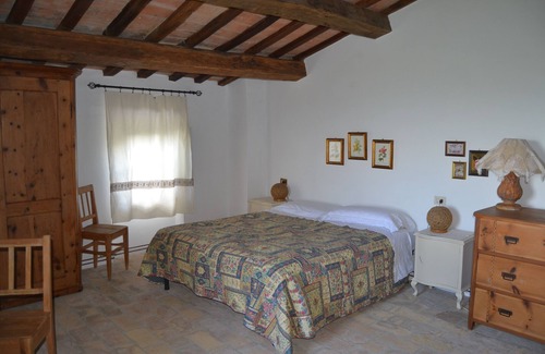 El establecimiento se encuentra dentro de la finca. Una casa de piedra típica (en los viejos mapas se llama "Badia Montesalce") con vistas al Valdichiascio, en campo abierto, pero a sólo 10 minutos de Gubbio, a 35 km de Perugia, 40 de Asís. La zona está bien comunicada por autobuses. Somos dueños de sull'imbocco el camino de San Francisco. La vieja casa de piedra se compone de 4 apartamentos + 1 dormitorio doble con cuarto de baño (sin estudio de cocina), todas con entrada privada. Todos tienen su propio espacio al aire libre con mesa y sillas para los huéspedes. Los apartamentos tienen capacidad para dos a seis personas y se componen de una sala de estar con cocina americana, un dormitorio y un baño con ducha. mesas y sillas de exterior, dos grandes barbacoa (un típico de Umbría, el "fogón", un Valtellina típico, el "Piöda") y tres más pequeñas, un montón de espacio verde para los huéspedes, senderos a pie o en la montaña -Bicicleta.