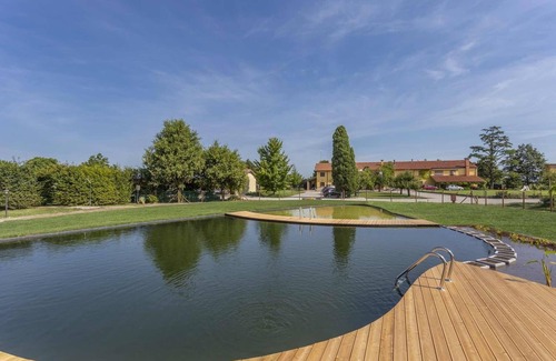 Casale Fattoria se encuentra en el patio de la granja, a unos 80 m del edificio principal de Agriturismo Tenuta Regina, donde se encuentra la recepción, la sala de desayunos, la piscina y el lago bio.