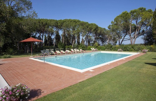 Qué opción más deslumbrante para una gran fiesta de vacaciones juntos, ya sea una familia extensa, varias familias que son amigos o simplemente un grupo de excelentes amigos. Fattoria Poggioasciolo, en una finca productora de vino excepcionalmente bien ubicada, es grandiosa sin ser abrumadora, pronto se sentirá como en casa aquí, y tiene una gran cantidad de espacio para todos. Diez habitaciones se corresponden con 10 baños; hay espacio adentro y afuera para comer juntos; y esta villa no tiene parangón cuando se trata de nadar. Sus hermosos terrenos no tienen uno, sino dos piscinas privadas: la principal es enorme; Al lado hay una piscina para bebés, perfecta para niños más pequeños.