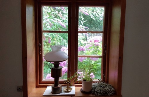 En la gran parcela natural parecida a un parque (unos 8.500 metros cuadrados) con árboles centenarios, hay grandes parques infantiles, un jardín de vegetales y flores y un pequeño estanque de patos. Ambos apartamentos se distribuyen en dos plantas y ofrecen espacio para máx. 6 personas En la planta baja (algunas con calefacción por suelo radiante) se encuentran: cocina (cocina equipada con lavavajillas, cocina con vitrocerámica / horno, cafetera, tetera, tostadora, buen equipamiento), comedor / sala de estar con chimenea, equipo de música, TV (satélite), un dormitorio con 2 camas individuales y un baño (WC + ducha).
