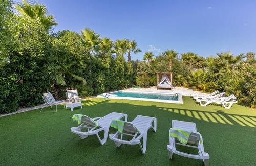 El lujo se extiende al área exterior, donde encontrarás una piscina privada rodeada de jardines. Disfruta del sol en una cómoda cama balinesa o relájate en el salón al aire libre mientras disfrutas de una agradable brisa. Una moderna barbacoa te permitirá organizar deliciosas parrilladas para tus invitados.
