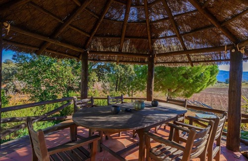 El espectáculo sigue en la zona exterior. El patio es lo primero que te acogerá. Rodeado por exuberante vegetación y con vistas impresionantes de las colinas de los alrededores, te deleitarás con el desayuno o cualquier otra comida que quieras disfrutar aquí. Antes de llegar a la piscina privada, visita la íntima pérgola de madera, donde encontrarás otra zona de comedor al aire libre. Las vistas que disfrutarás desde aquí son de las más relajantes. Por último, toma un chapuzón en la espectacular piscina privada, a la sombra de árboles centenarios, toma el sol en las tumbonas y deléitate con una copa en la zona de chill-out. Cualquier cosa elijas, que sepas que aquí vivirás tus vacaciones como un rey.