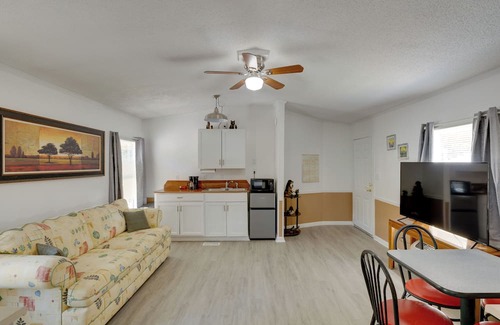 La cocina está equipada con frigorífico, además de cafetera y tetera, microondas y utensilios de cocina. Otras comodidades de este alojamiento de 1 dormitorio y 1 baño incluyen ropa de cama, aire acondicionado y calefacción.