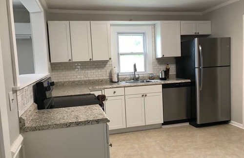 Este 4 dormitorios 2 baños agradables toda nueva cocina, sala de estar, comedor y sala de estar 4 cama queen size y 2 colchones de espuma de memoria de un solo tamaño y 1 futón sofá / cama.